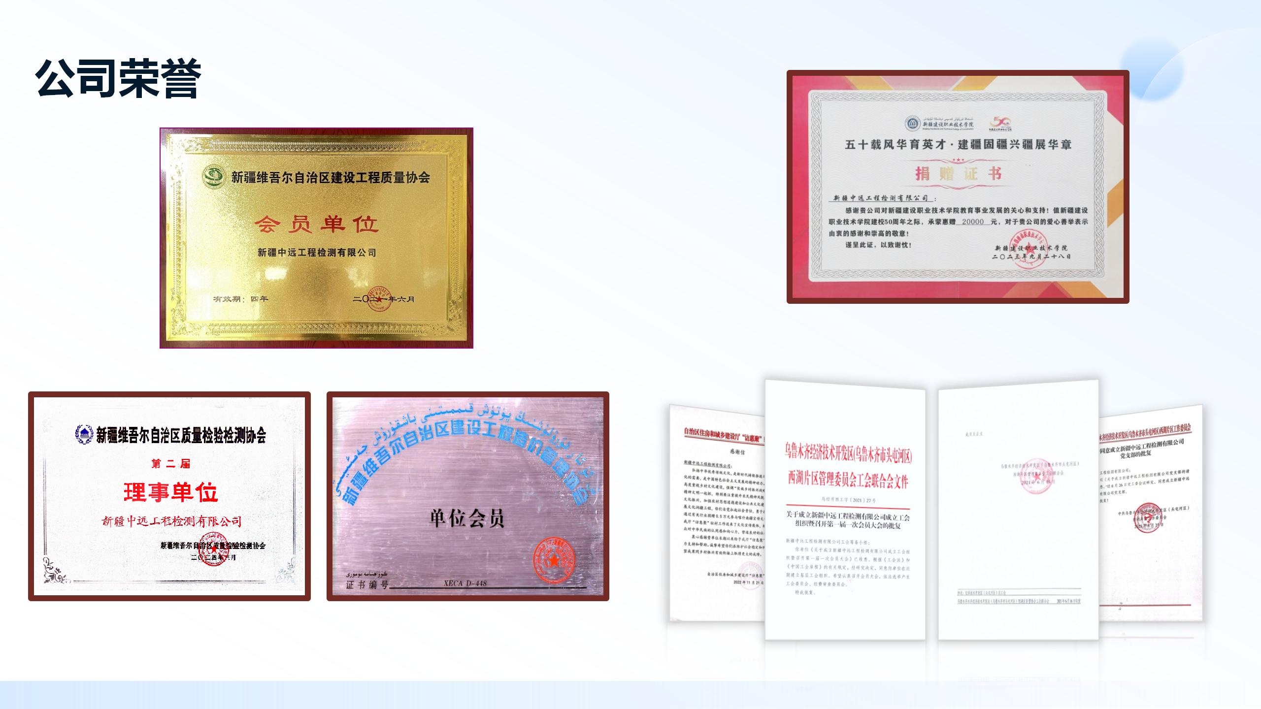 新疆中远工程检测有限公司历经20年的成长,现拥有一支业务精湛、忠诚敬业、纪律严明的高素质人员队伍和各行业高精专家团队,既有扎实的理论基础,又有丰富的实践经验。严格遵守"客观公正、科学规范、及时准确"的质量方针,客户服务满意率≥95%,取得较好的社会声誉。