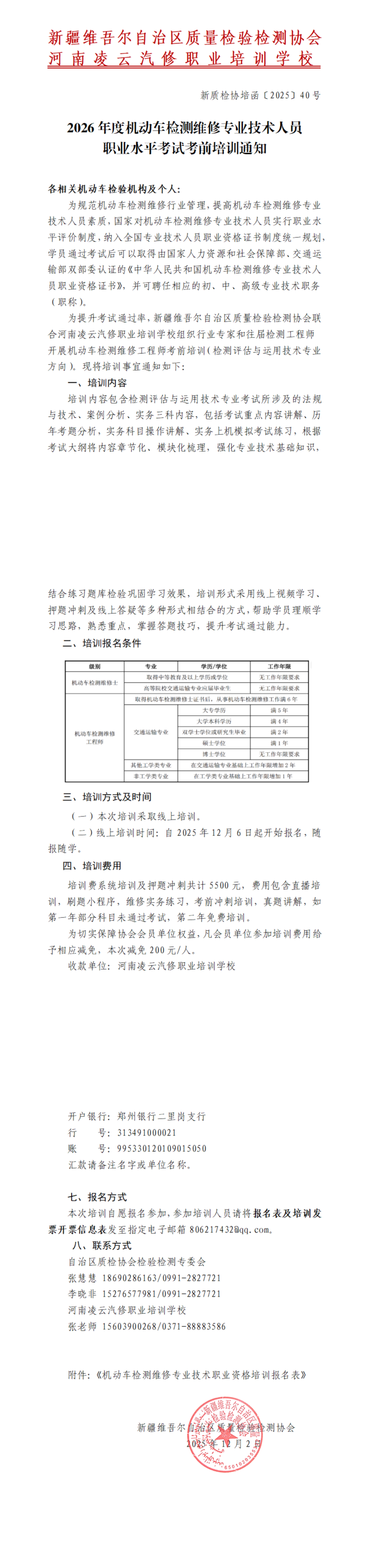 2026年度机动车检测维修专业技术人员职业水平考试考前培训通知