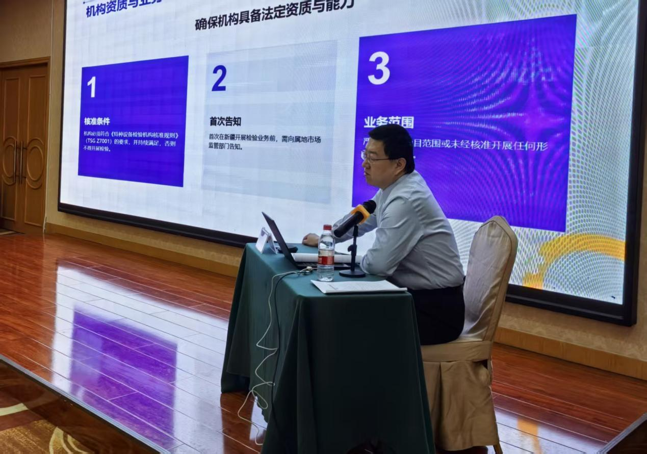 自治区市场监督管理局特种设备安全监察局副局长马建胜同志出席开班仪式,并对本次活动作出三点重要要求,第一是提高政治站位,把标准作为刚性约束、行动遵循。第二要坚持问题导向,把监管要求落到实处、见到实效,要对照新标准和近期监督抽查发现的问题短板,深入自查自纠,立行立改、举一反三、标本兼治。第三压紧压实责任,坚决守住气瓶安全底线,各气瓶检验机构要严格落实安全主体责任,坚持依法检验、规范操作、诚信执业。随后马局长通报了2025年全疆气瓶检验机构监督抽查情况;详细解读了《新疆维吾尔自治区气瓶检验机构监督管理办法》,还详细解答了学员提出的关于气瓶检验机构建设的诸多问题。