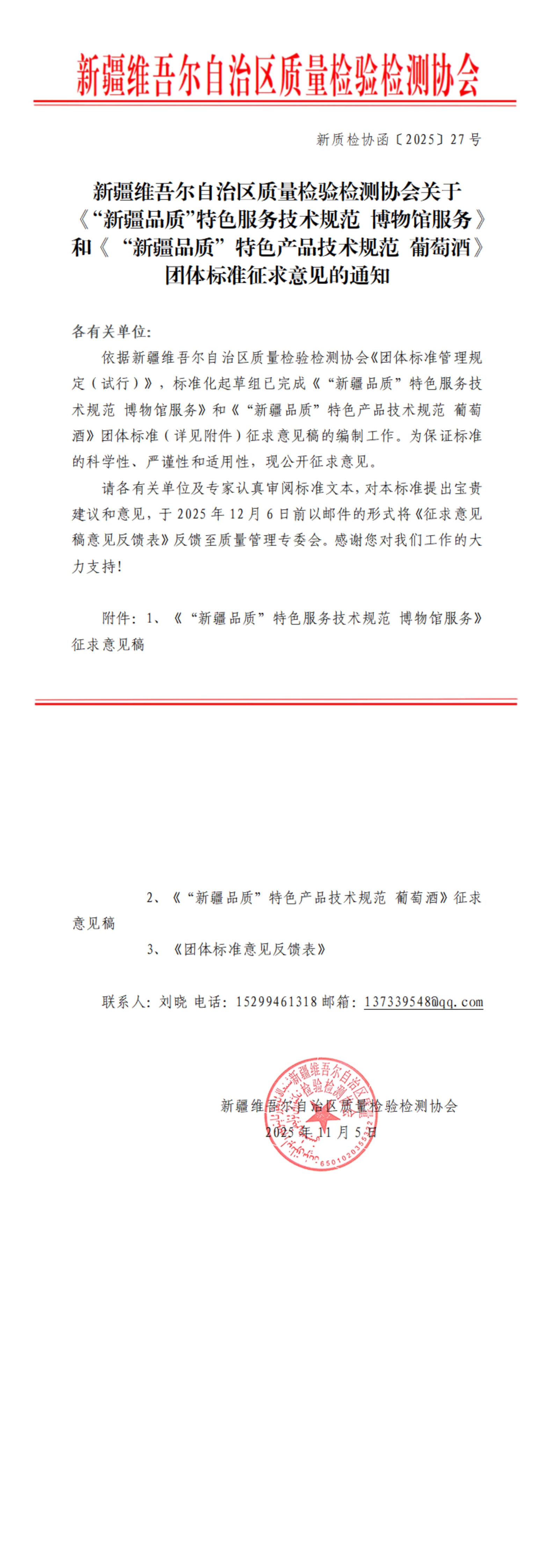 关于 《“新疆品质”特色服务技术规范 博物馆服务》和《“新疆品质”特色产品技术规范 葡萄酒》团体标准征求意见