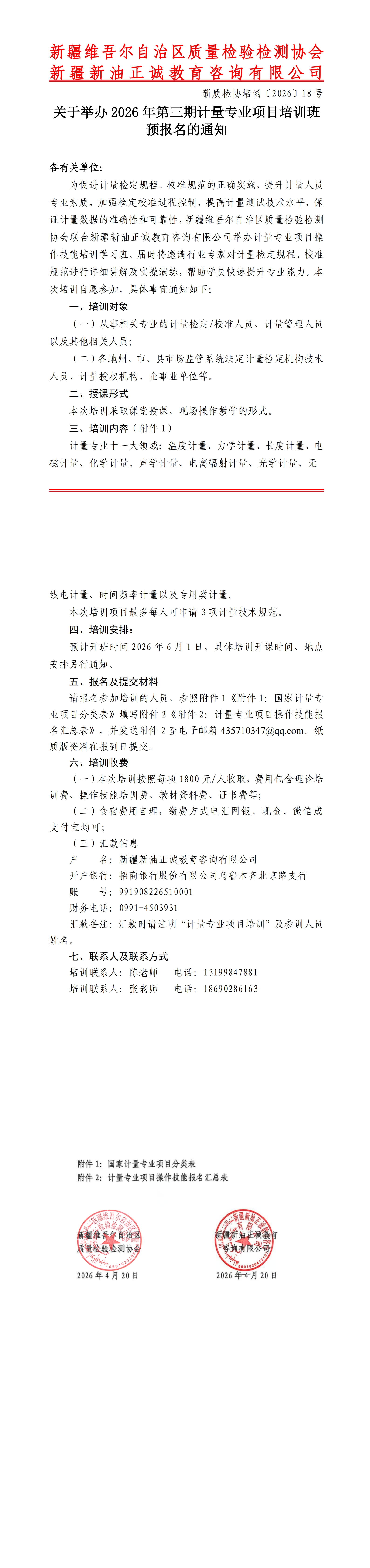 关于举办2026年第三期计量专业项目培训班预报名的通知