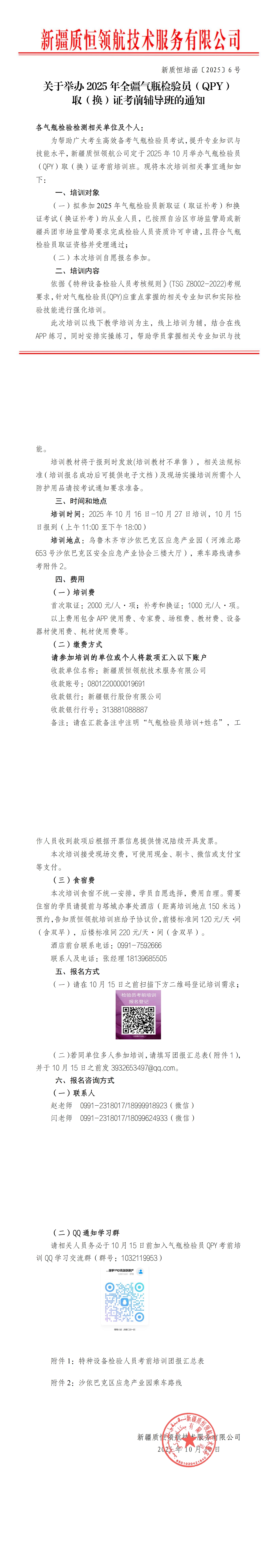 转载丨关于举办2025年全疆气瓶检验员(QPY)取(换)证考前辅导班的通知